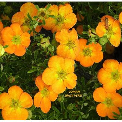 Plante decorative perene de gradina. Potentilla fruticosa Orange este un arbust ornamental de talie mica, sub 1 m, care infloreste o perioada foarte mare, din iunie pana in octombrie-noiembrie. Florile sunt foarte multe de culoare portocalie.